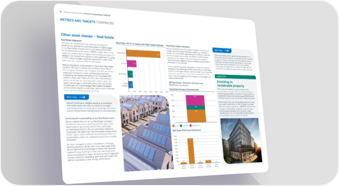 32 Pension Protection Fund Climate Change Report 2022/23 METRICS AND TARGETS CONTINUED Other asset classes – Real Estate Real Estate alignment Real Estate: MV (%) in Assets with High Energy Rankings Real Estate Carbon Emissions This year, we worked with our external consultant to We are pleased that our Real Estate managers reported such Next steps enhance our approach to estimating data to address gaps a high amount of carbon emissions data to us. However, in our Real Estate analysis and to calculate portfolio ITRs we are not comfortable aggregating the emissions reported We would ideally like to report the percentage of our for the Real Estate book. Seven CRREM models were run to United States 63% by the managers yet, as they use di昀昀erent methodologies Real Estate book invested in buildings that are classi昀椀ed capture a combination of regions and building use types. In and there is still a high reliance on estimated emissions. as green or have certi昀椀cates that showcase excellence. addition, we moved from a point-in-time approach to using Half of the book is based on actual emissions and the rest is However, we have received reporting on this for less a 1.5°C carbon budget overshoot approach to align more estimated or not reported. than 40 per cent of the book, so it’s not currently with how our corporate ITRs are generated. Europe 17% meaningful to aggregate or analyse the data. We will From a reporting quality perspective, almost all reported work with managers to obtain better results next year. Results showed an improvement in the overall Real Estate emissions have achieved a PCAF Score of 2 or 4. Although portfolio ITR and only three sub-portfolios have ITRs of almost all managers (96 per cent by market value) reported 2°C or higher. However, we recognise that this was driven emissions, only 67 per cent of them provided the PCAF CASE STUDY largely by moving to a more sophisticated approach Japan/Korea 9% Score. We are engaging with managers to investigate the to applying real estate estimations from the global ESG reason behind this. platform Measurabl. There are still a few sub-portfolios Investing in whose results we are assessing with caution, given the PPF Real Estate – Emissions disclosure and higher percentage of estimated rather than actual data. United 8% PCAF Score distribution sustainable property In particular, our multimanager Real Estate mandate is Kingdom almost entirely based on estimates, given some challenges Real Estate Emissions Disclosure Rate This year we invested in a loan to 昀椀nance the in accessing underlying fund reporting. 0% 10% 20% 30% 40% 50% 60% 70% construction of a state-of-the-art o昀케ce building in Bristol’s business district. The seven-storey property is 100% 40% expected to have a net internal area of 200,000 sq ft Next steps and the capacity to host more than 2,000 employees. 80% At the time of the loan, the building was one of only We will continue to validate results at an individual two under construction in the UK regions to target real-estate asset level with our external managers, 60% 12% Net Zero carbon operations, a BREEAM ‘Outstanding’ prioritising action on assets generating high ITR scores rating for sustainability standards, and an Energy and on the portfolios relying heavily on estimated data. 40% 48% Performance Certi昀椀cate (EPC) A-rating. These classi昀椀cations will put the building at the forefront 20% of sustainable o昀케ce provision in the UK. Assessing the sustainability of our Real Estate assets We are pleased that our all our Real Estate managers provided at least some reporting, and this gave us the 0 opportunity to get an overview of how sustainable Actual Estimated Not Covered our Real Estate book is. We can potentially classify as ‘sustainable’ the assets that have the highest energy rating Real Estate PCAF Score Distribution in their region, hold certi昀椀cates showcasing excellence in sustainability, and/or are classi昀椀ed as green by a credible 90% third party. 80% 82% We have managed to obtain a breakdown of Energy 70% Ranking results for 88 per cent of our Real Estate book. Above right are the percentage of assets that have the 60% Highest Energy Rankings in their area. We break down 50% 昀椀gures by geographic region because we feel an aggregate 40% number would be misleading, given that each region has 30% di昀昀erent standards in their energy performance. 20% 10% 6% 3% 9% 0 0% PCAF PCAF PCAF PCAF PCAF Score 1 Score 2 Score 3 Score 4 Score 5